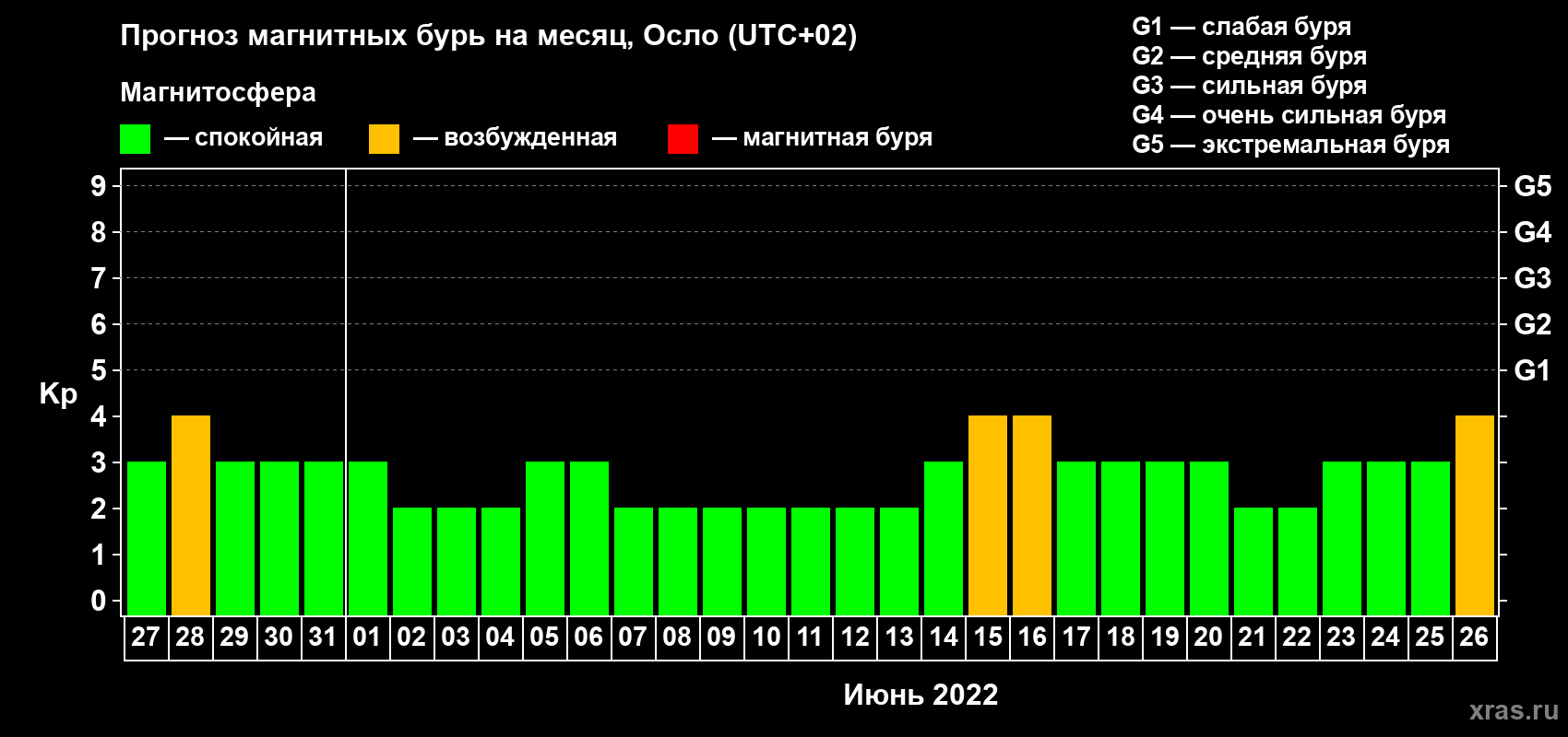 Прогноз магнитных бурь Осло — 27 мая 2022 года