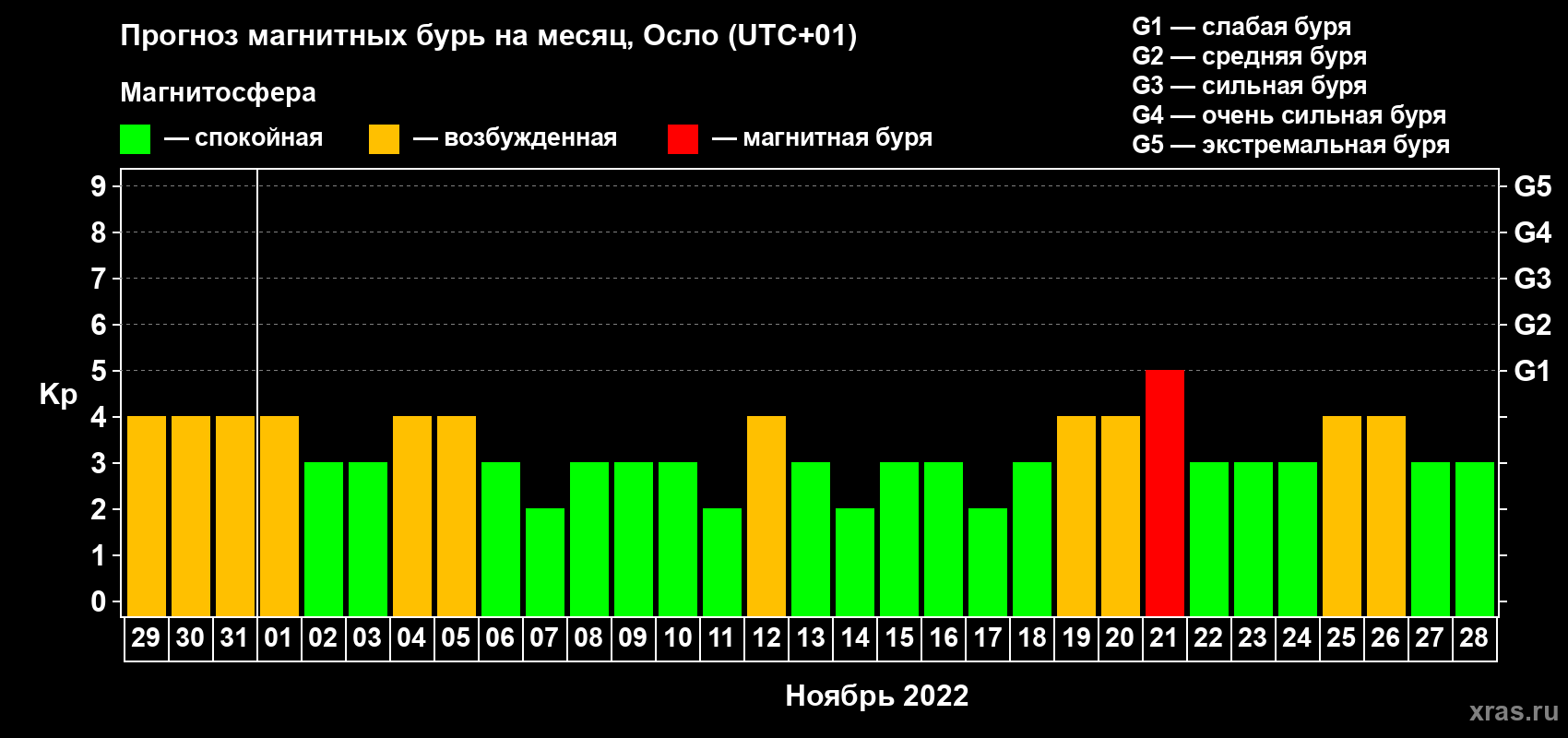 Прогноз магнитных бурь Осло — 29 октября 2022 года