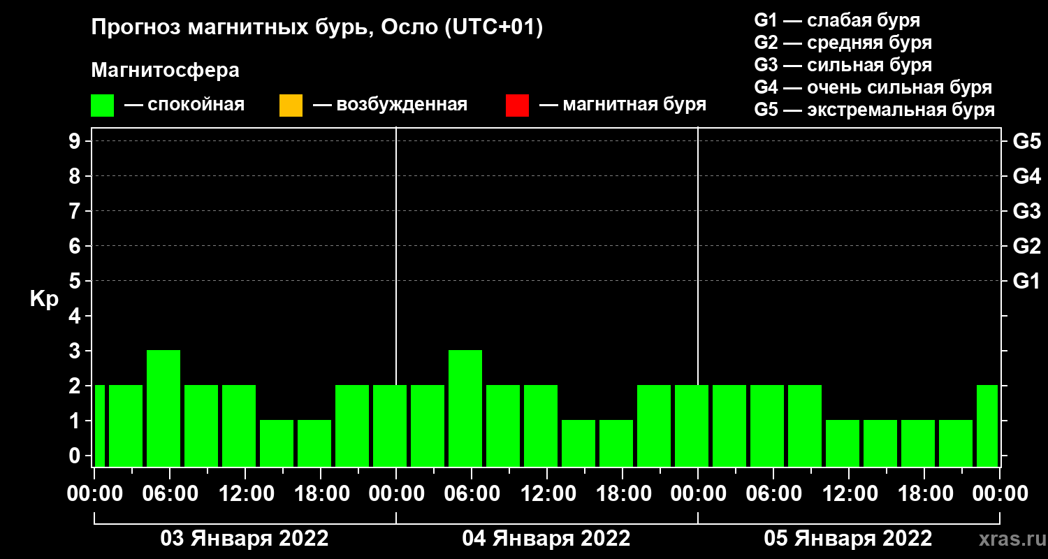 Прогноз магнитных бурь Осло — 3 января 2022 года