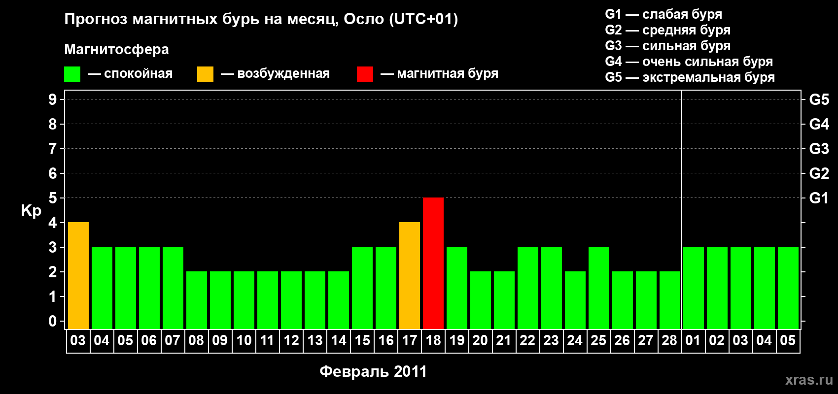 Прогноз магнитных бурь Осло — 3 февраля 2011 года