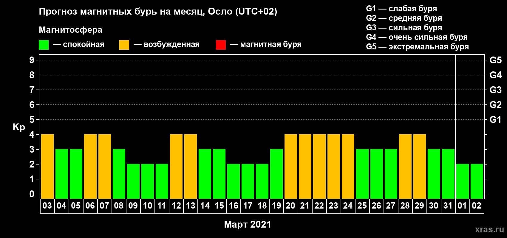 Прогноз магнитных бурь Осло — 3 марта 2021 года