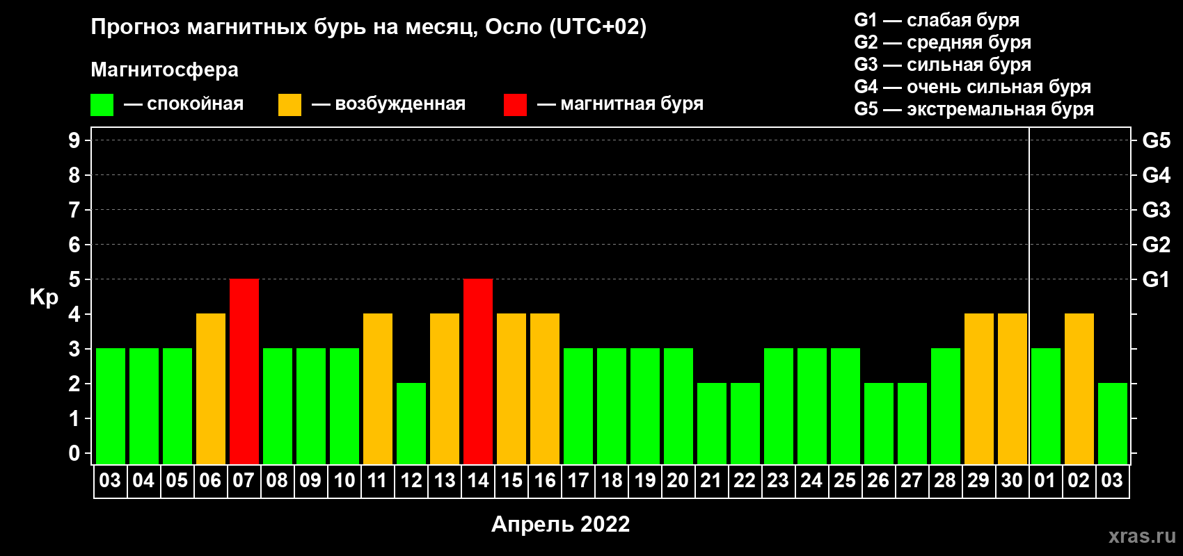 Прогноз магнитных бурь Осло на 3 апреля 2022 года