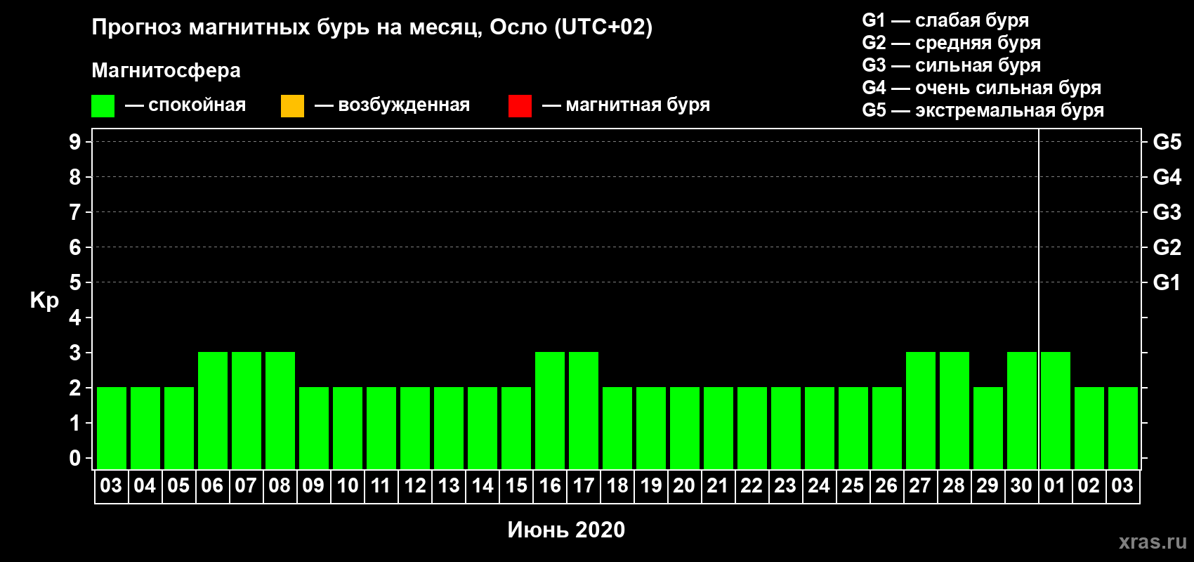 Прогноз магнитных бурь Осло — 3 июня 2020 года