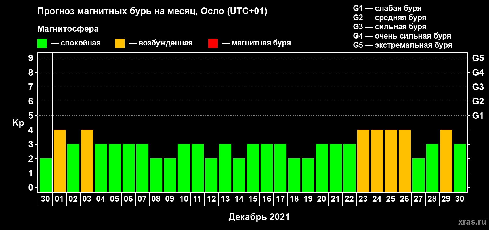 Прогноз магнитных бурь Осло — 30 ноября 2021 года