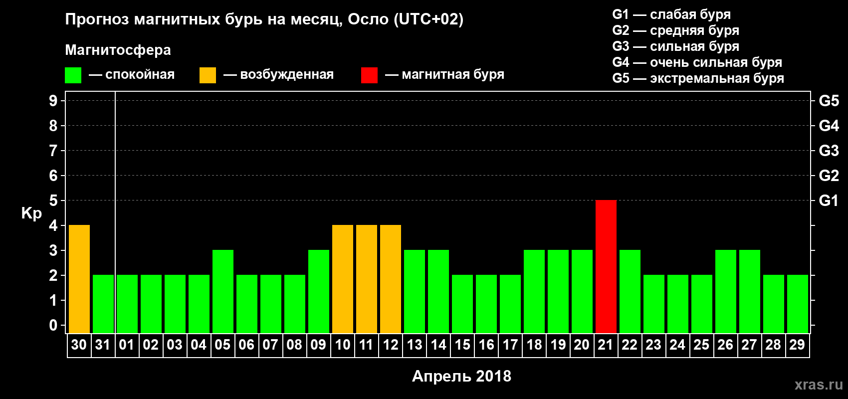 Прогноз магнитных бурь Осло на 30 марта 2018 года
