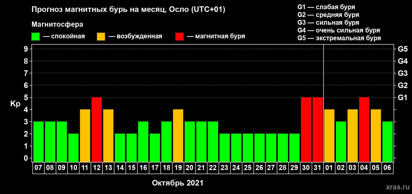 Прогноз магнитных бурь Осло — 7 октября 2021 года
