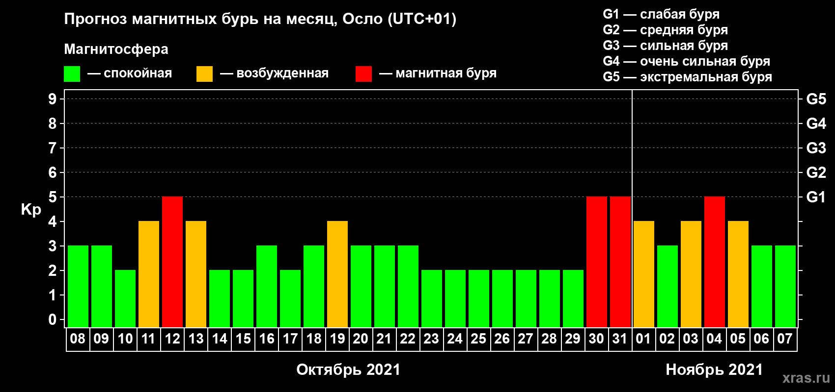 Прогноз магнитных бурь Осло — 8 октября 2021 года