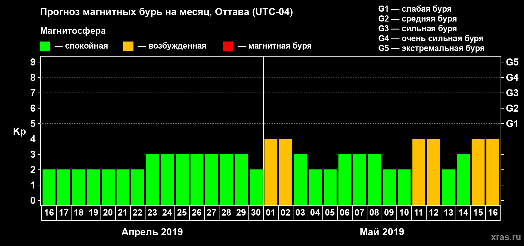 Прогноз магнитных бурь в Оттаве — 16 апреля 2019 года