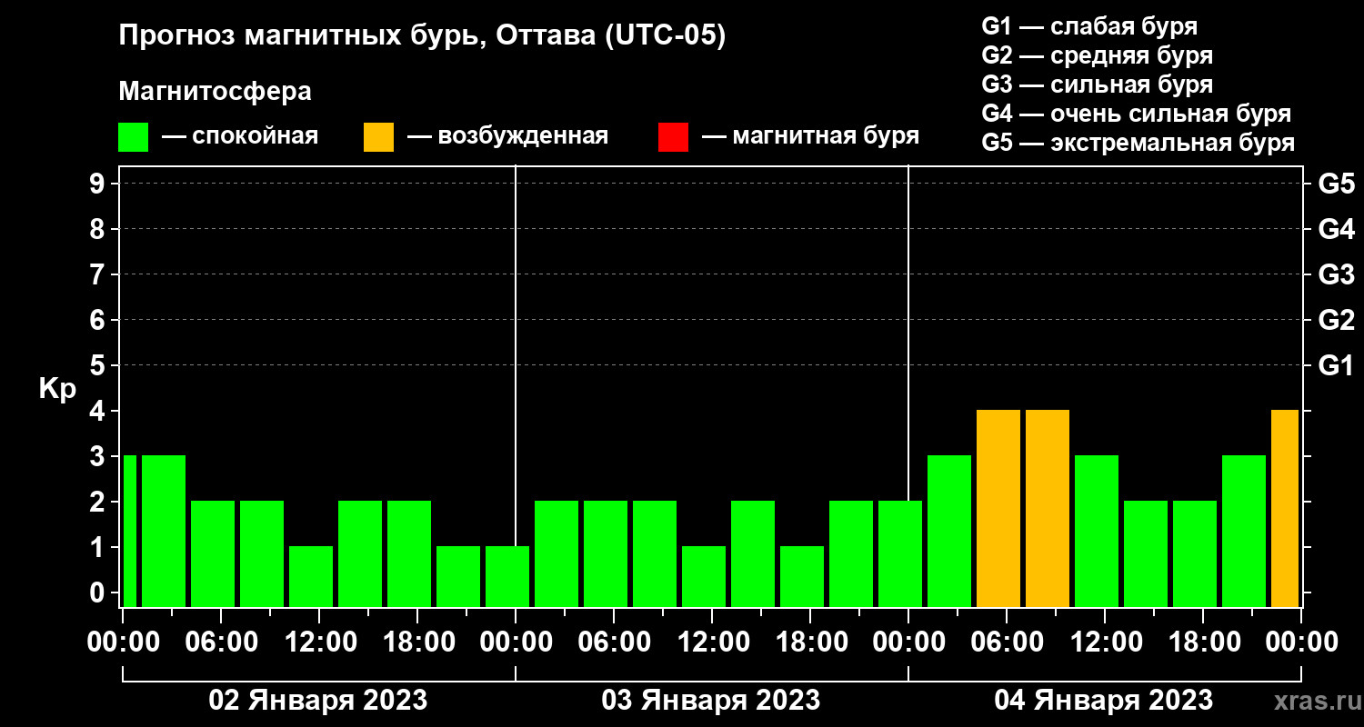 Прогноз магнитных бурь в Оттаве — 2 января 2023 года
