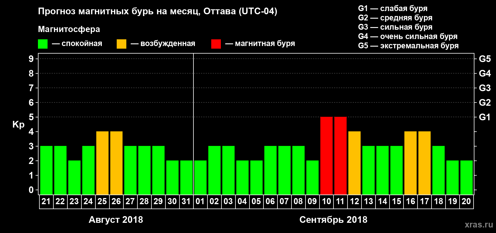 Прогноз магнитных бурь в Оттаве — 21 августа 2018 года