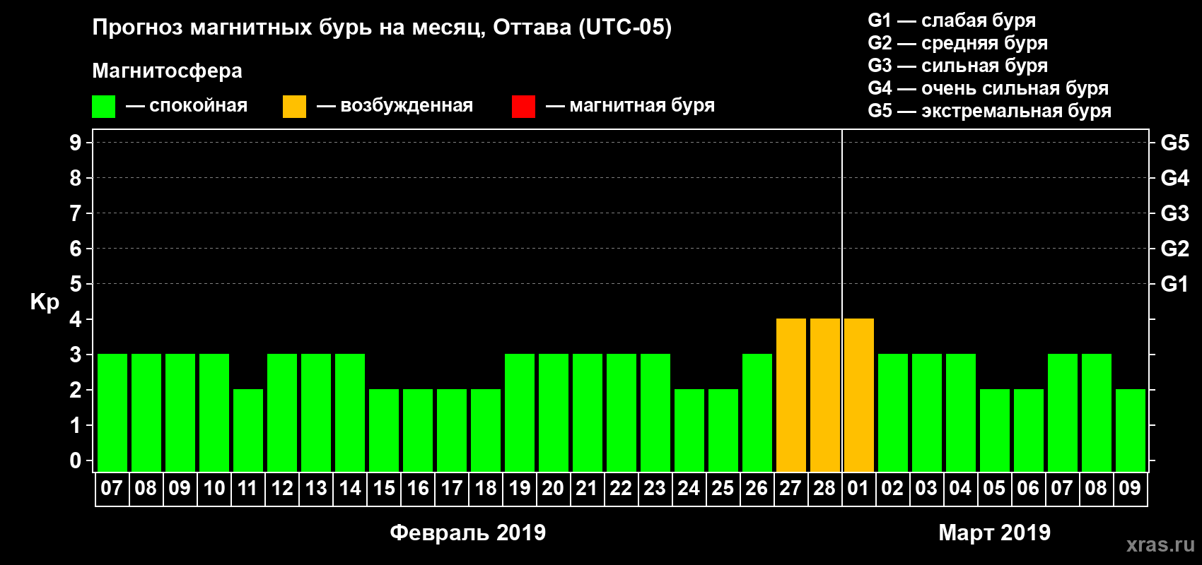 Прогноз магнитных бурь в Оттаве — 7 февраля 2019 года