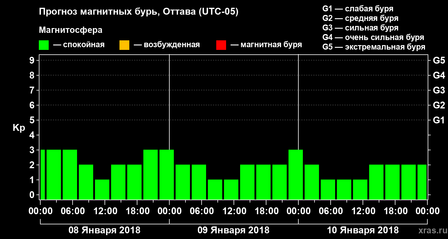 Прогноз магнитных бурь в Оттаве — 8 января 2018 года