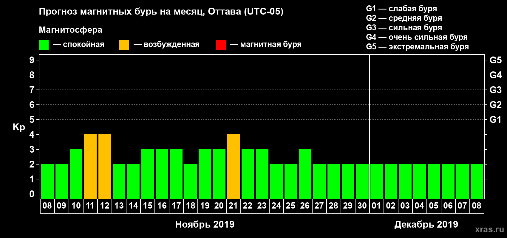 Прогноз магнитных бурь в Оттаве — 8 ноября 2019 года