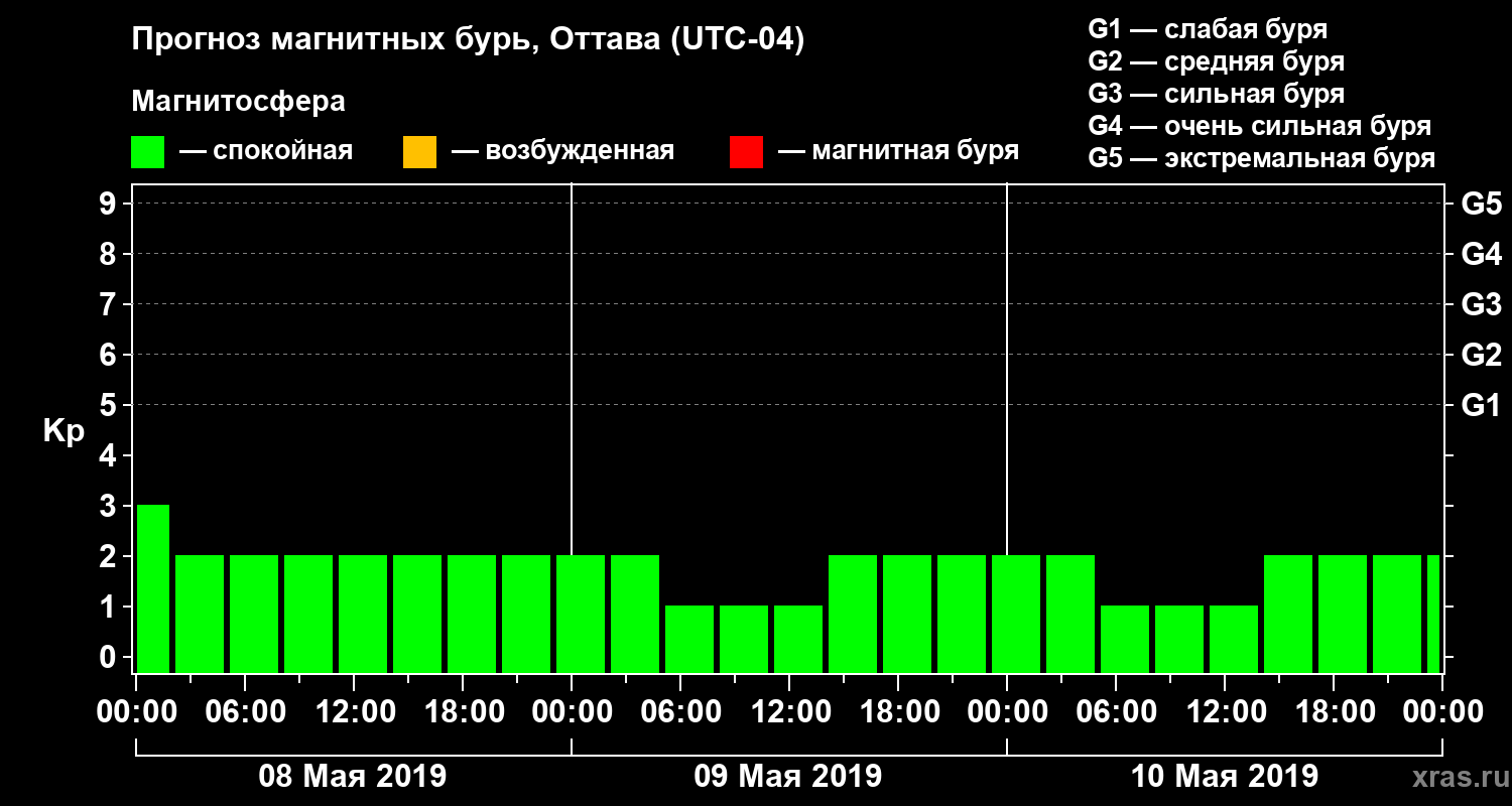 Прогноз магнитных бурь в Оттаве — 8 мая 2019 года