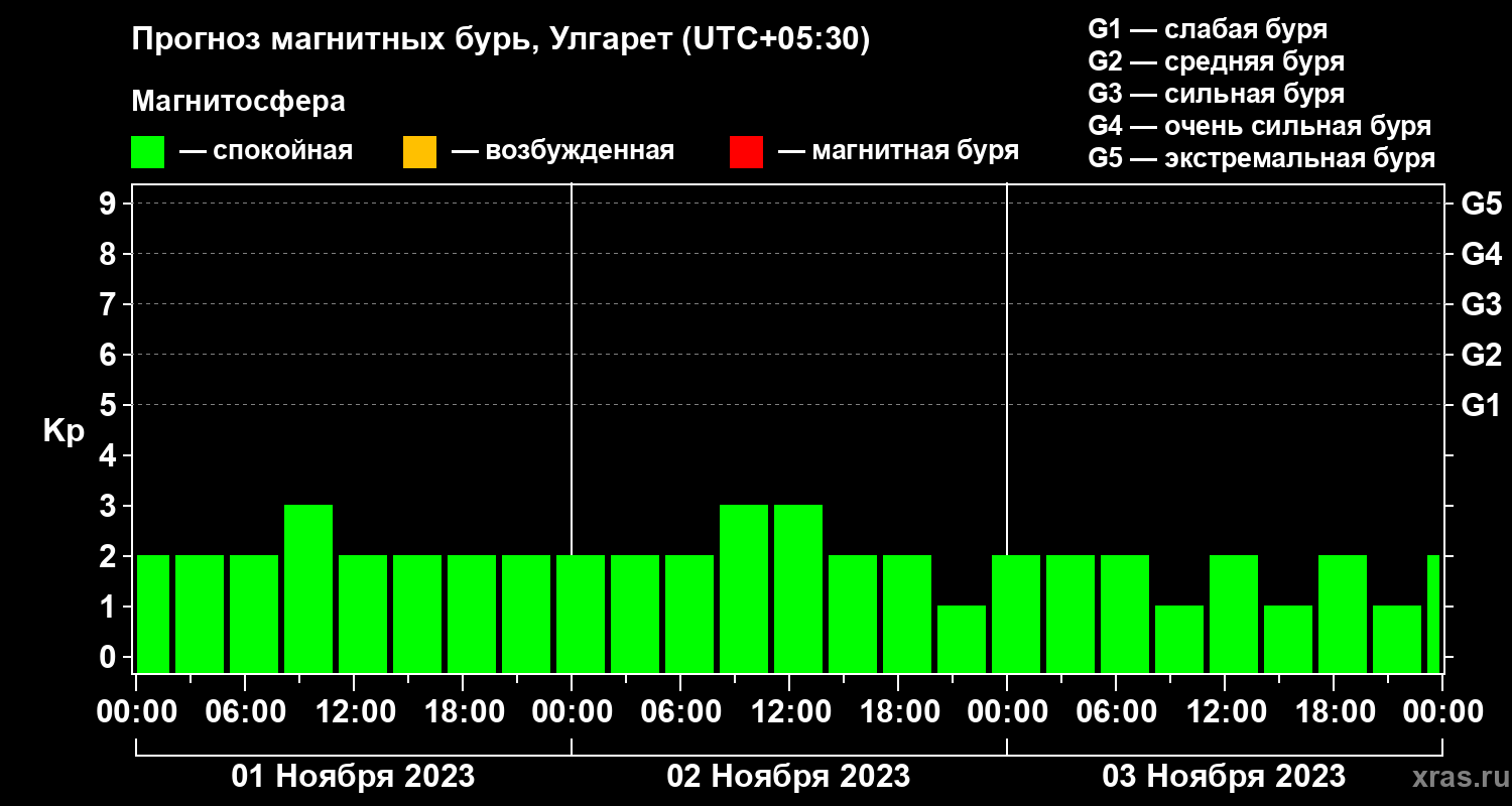 Прогноз магнитных бурь в Улгарете — 1 ноября 2023 года