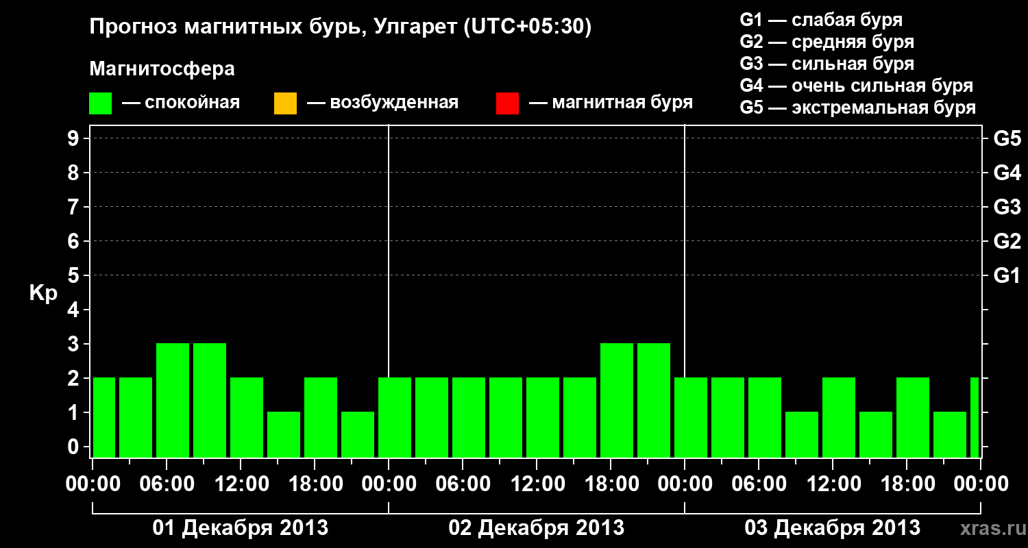 Прогноз магнитных бурь в Улгарете на 1 декабря 2013 года