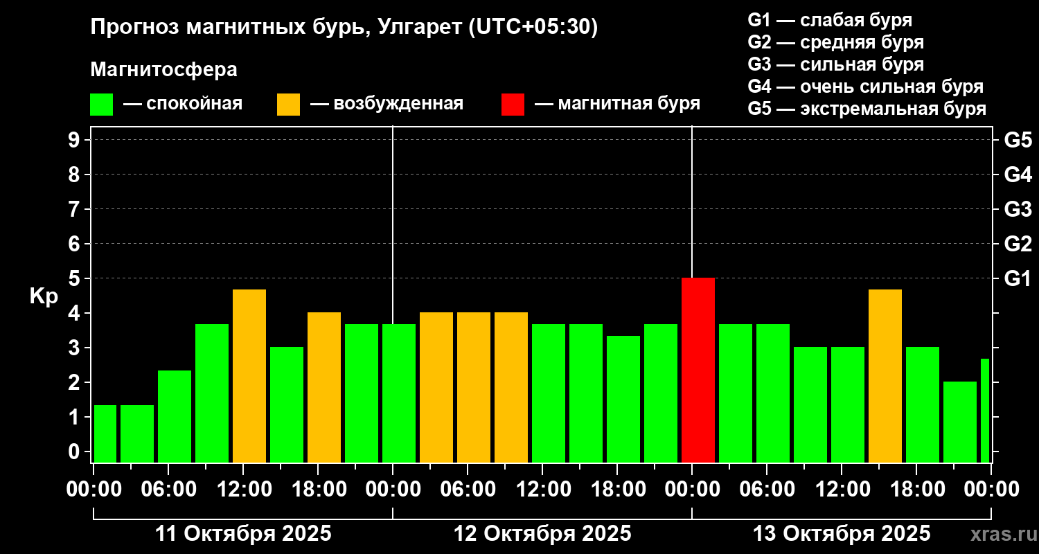 Прогноз магнитных бурь в Улгарете — 11 октября 2025 года
