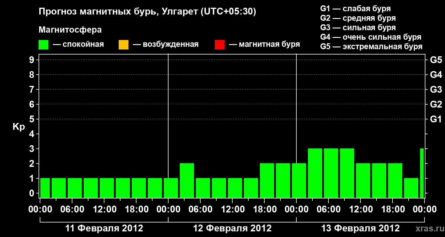 Прогноз магнитных бурь в Улгарете на 11 февраля 2012 года