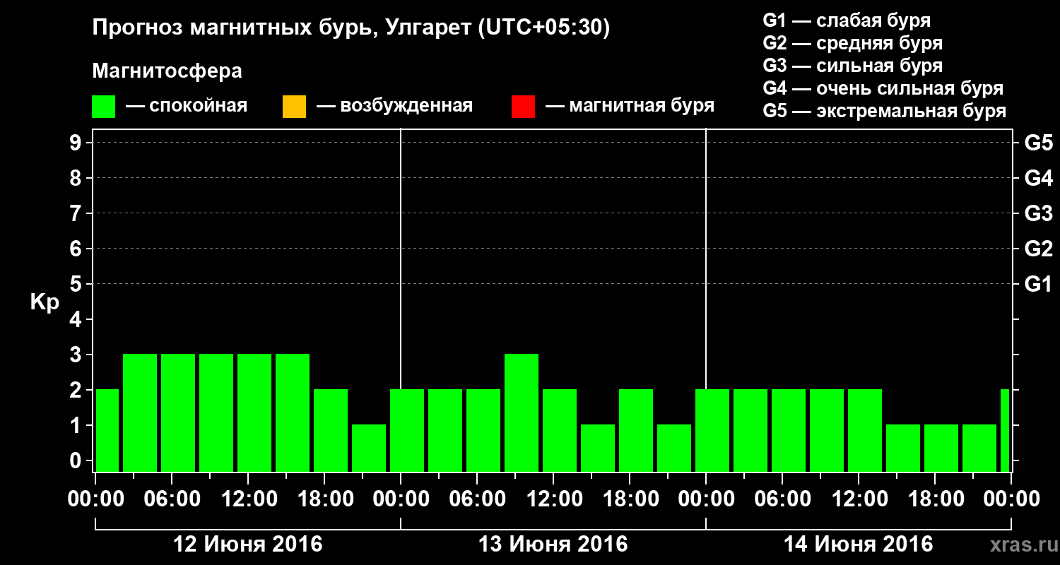 Прогноз магнитных бурь в Улгарете на 12 июня 2016 года