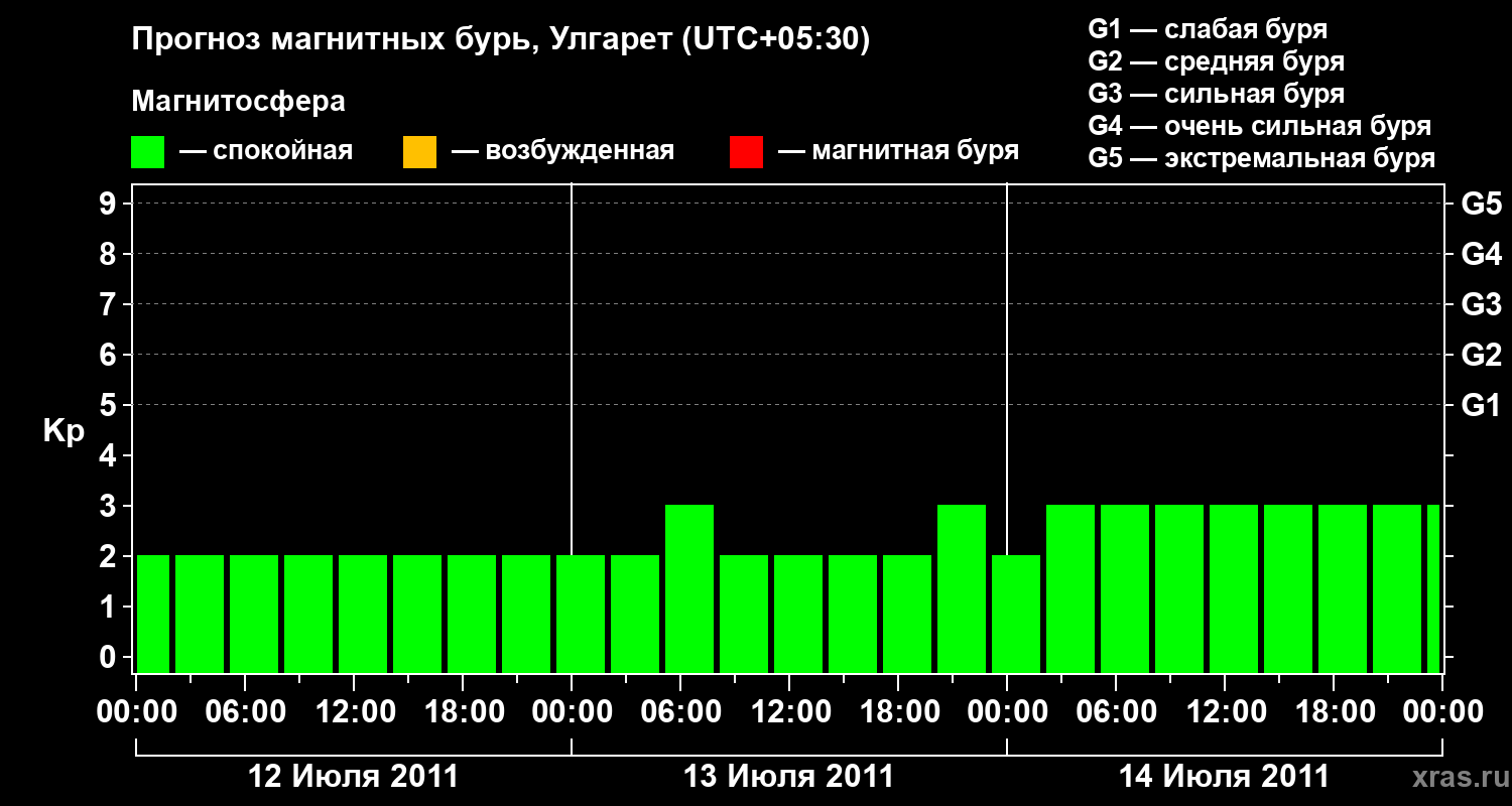 Прогноз магнитных бурь в Улгарете — 12 июля 2011 года