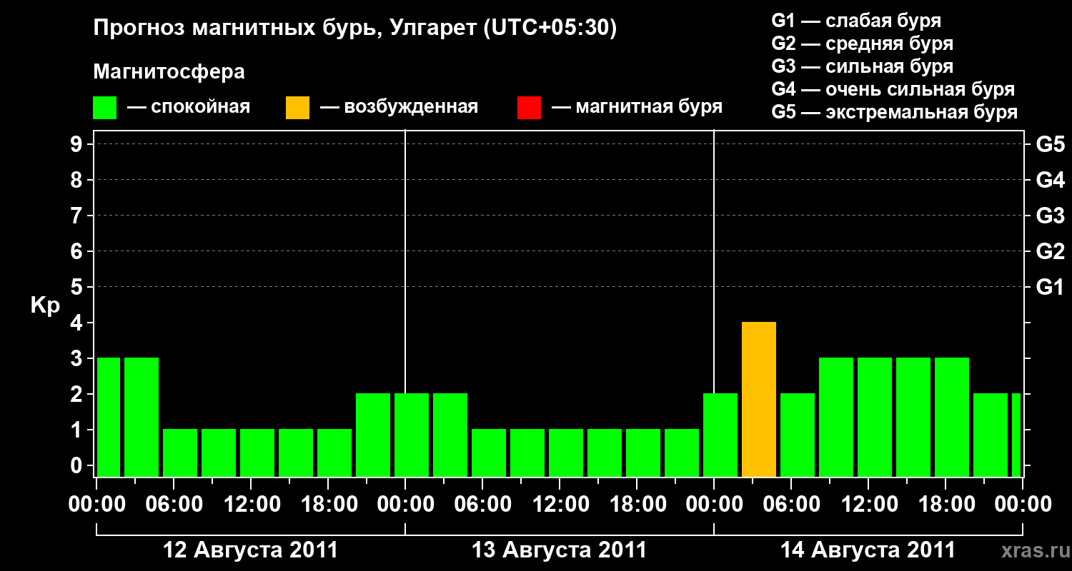 Прогноз магнитных бурь в Улгарете на 12 августа 2011 года