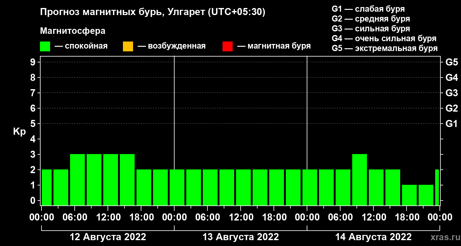 Прогноз магнитных бурь в Улгарете на 12 августа 2022 года