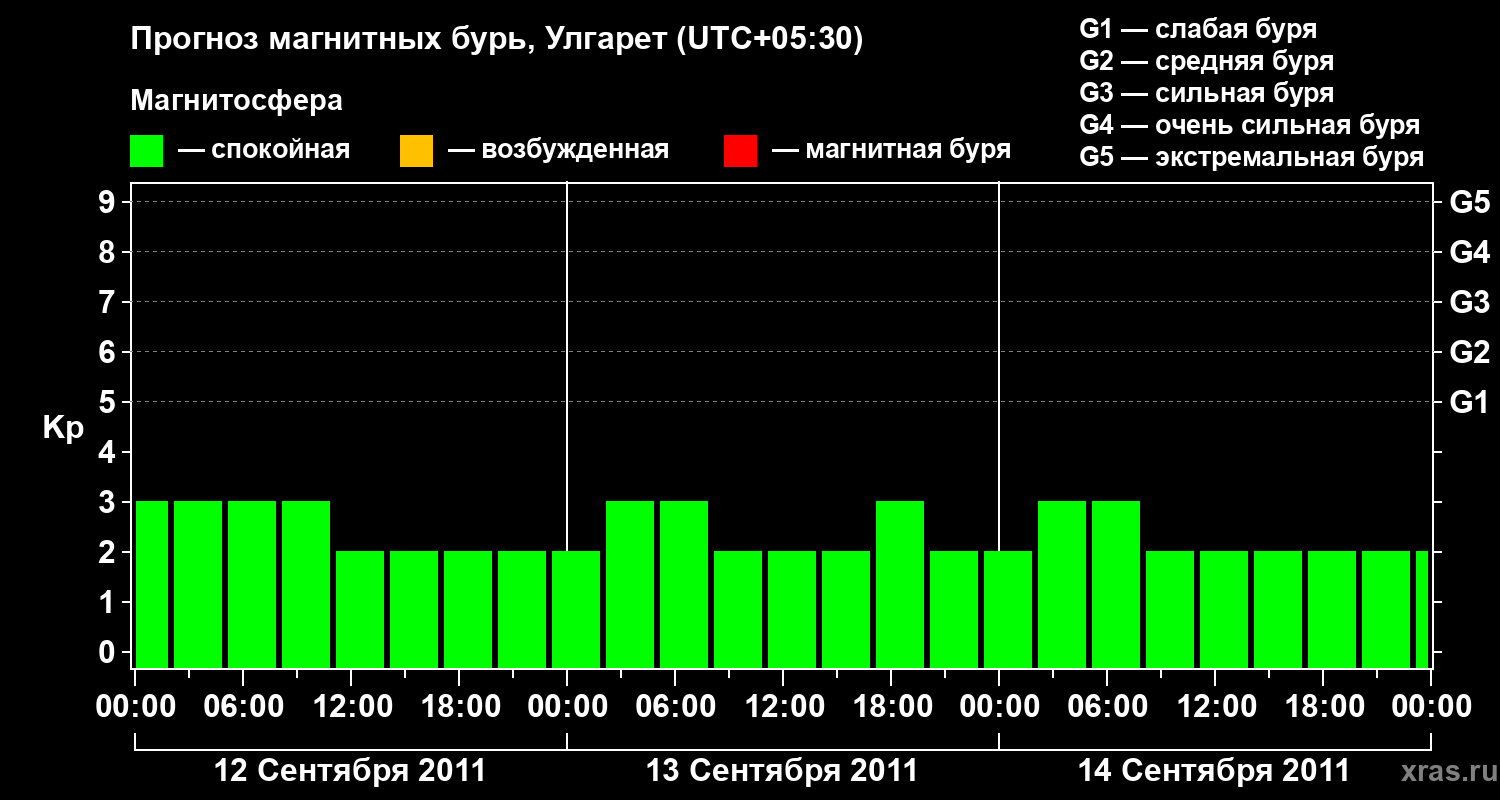 Прогноз магнитных бурь в Улгарете на 12 сентября 2011 года