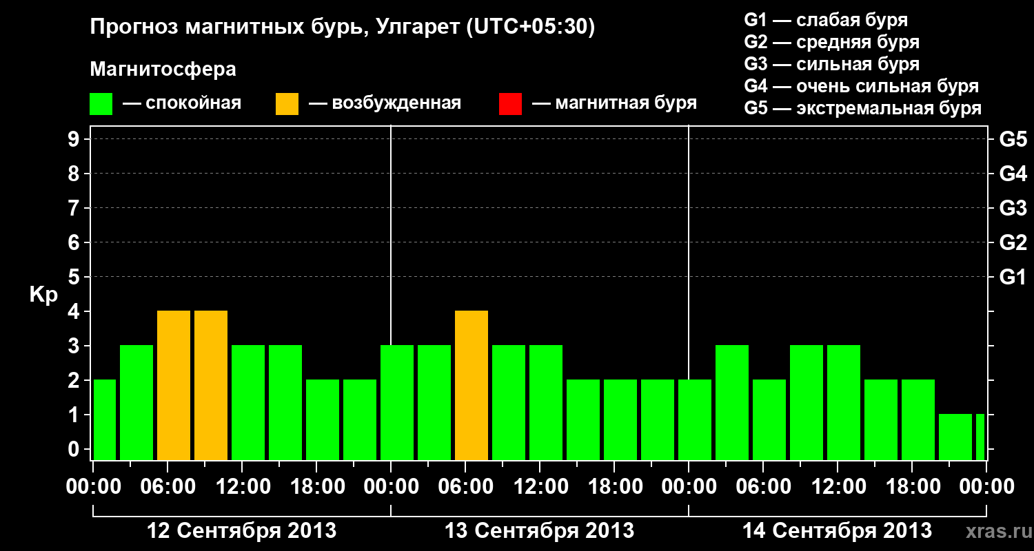 Прогноз магнитных бурь в Улгарете на 12 сентября 2013 года
