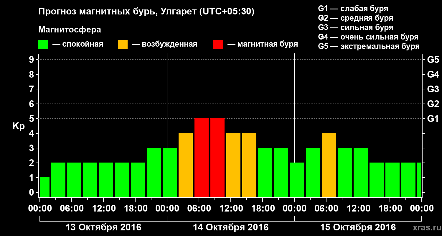 Прогноз магнитных бурь в Улгарете на 13 октября 2016 года