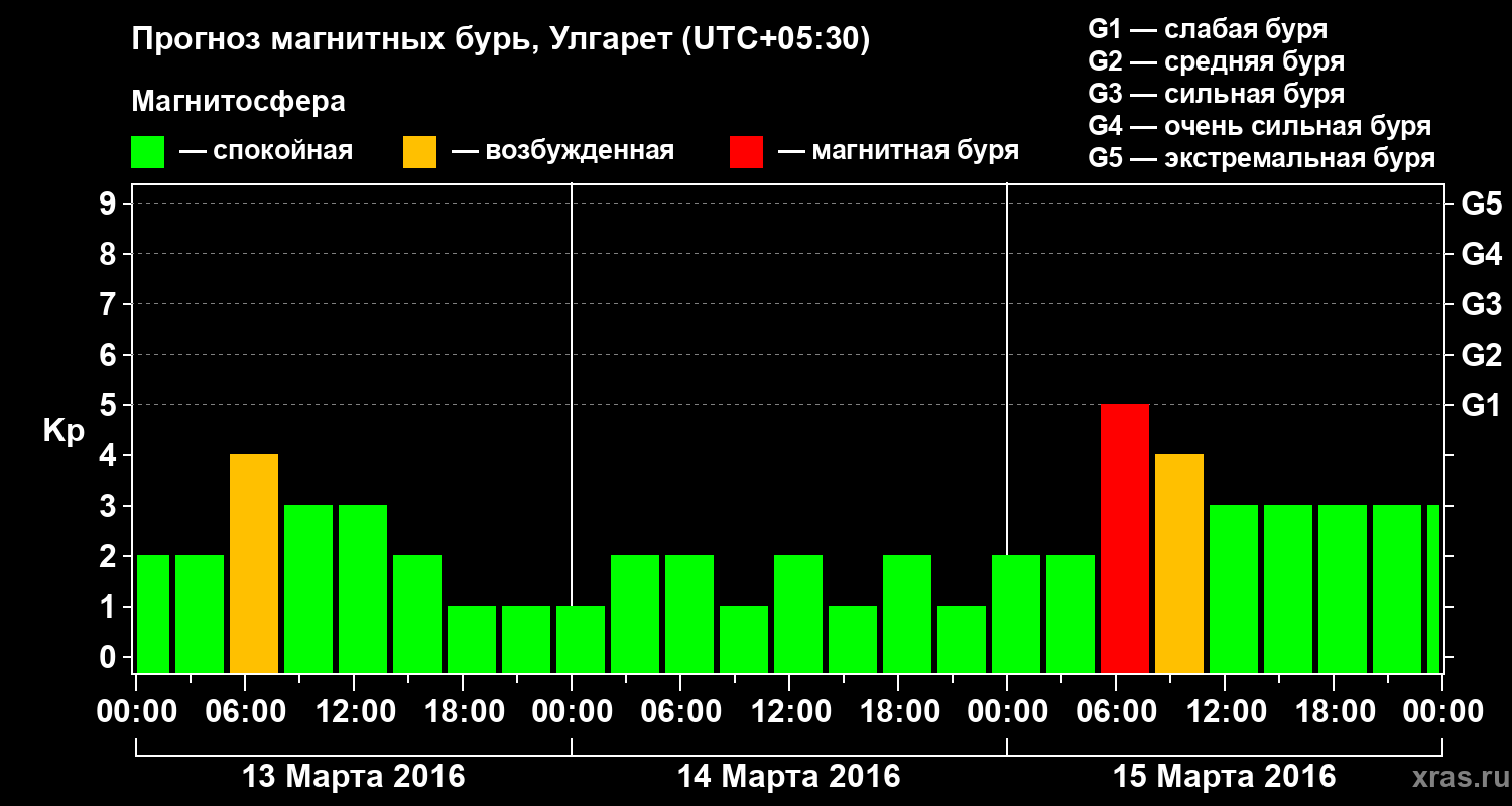 Прогноз магнитных бурь в Улгарете — 13 марта 2016 года