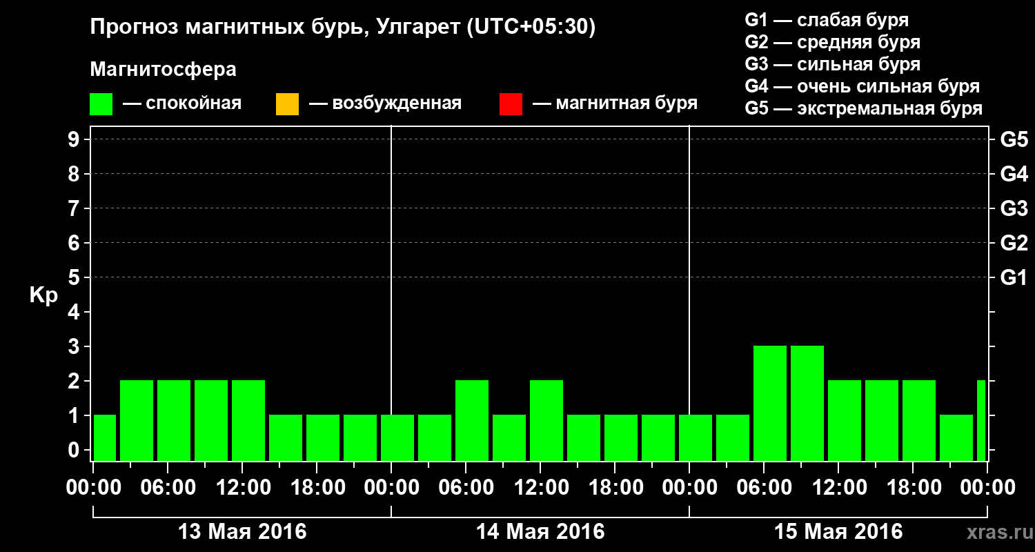 Прогноз магнитных бурь в Улгарете — 13 мая 2016 года