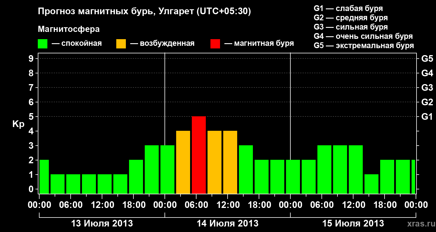 Прогноз магнитных бурь в Улгарете на 13 июля 2013 года