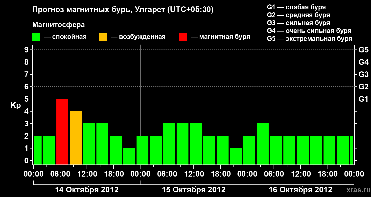 Прогноз магнитных бурь в Улгарете на 14 октября 2012 года