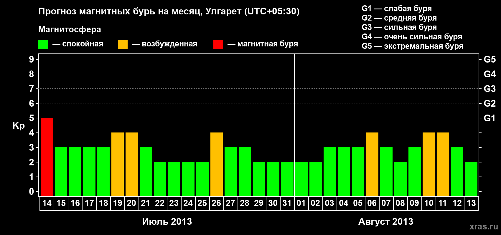 Прогноз магнитных бурь в Улгарете на 14 июля 2013 года
