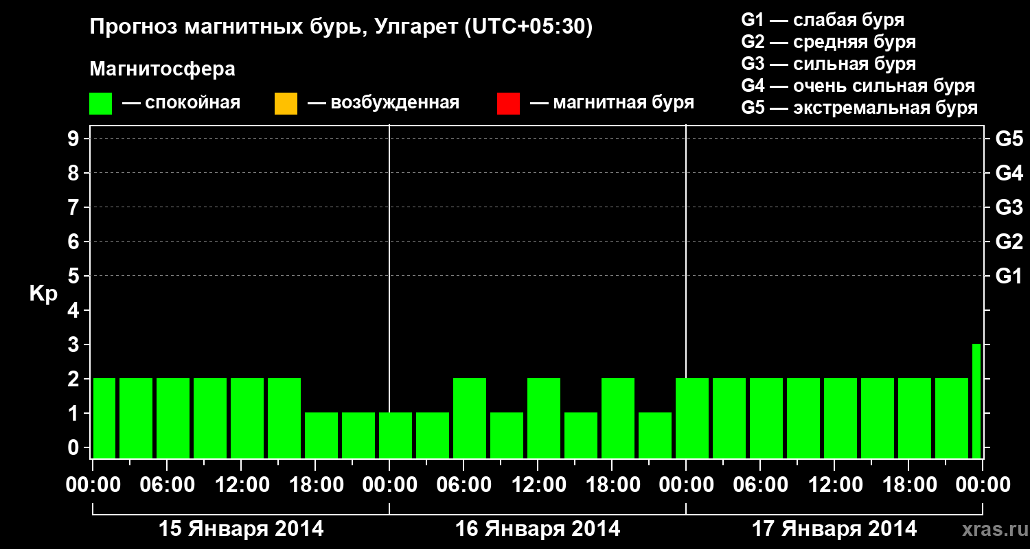 Прогноз магнитных бурь в Улгарете — 15 января 2014 года