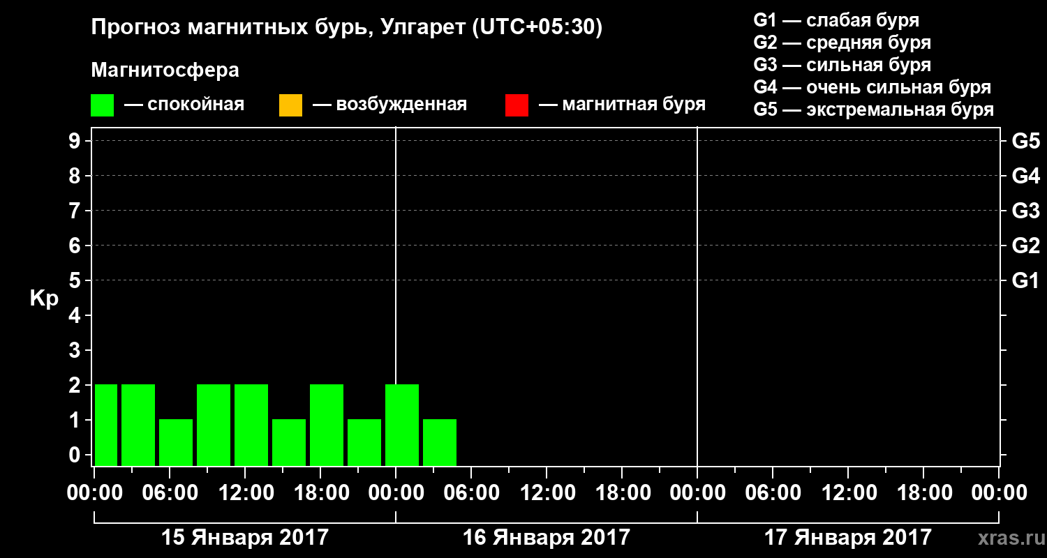 Прогноз магнитных бурь в Улгарете — 15 января 2017 года