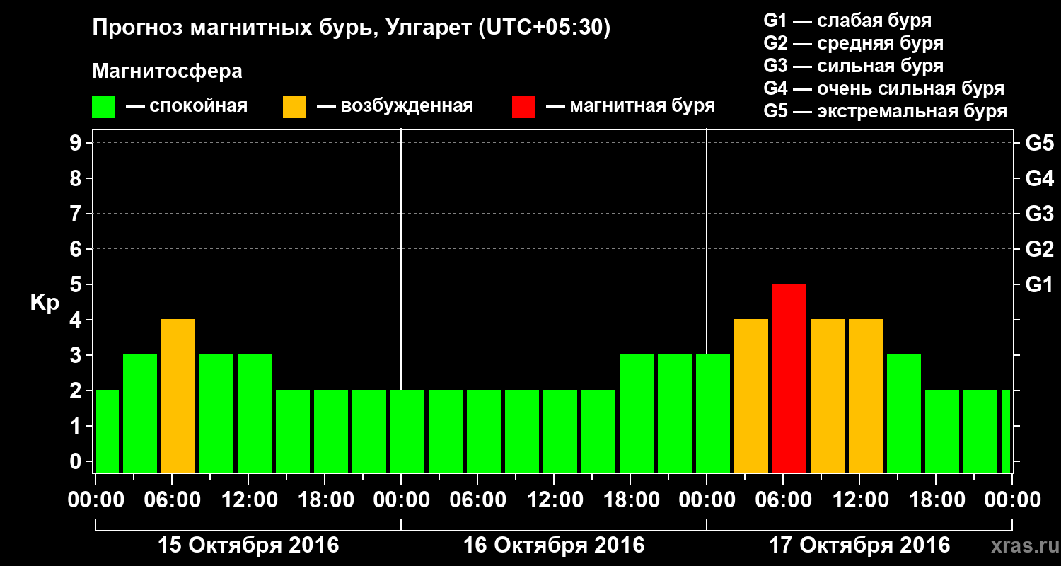 Прогноз магнитных бурь в Улгарете на 15 октября 2016 года
