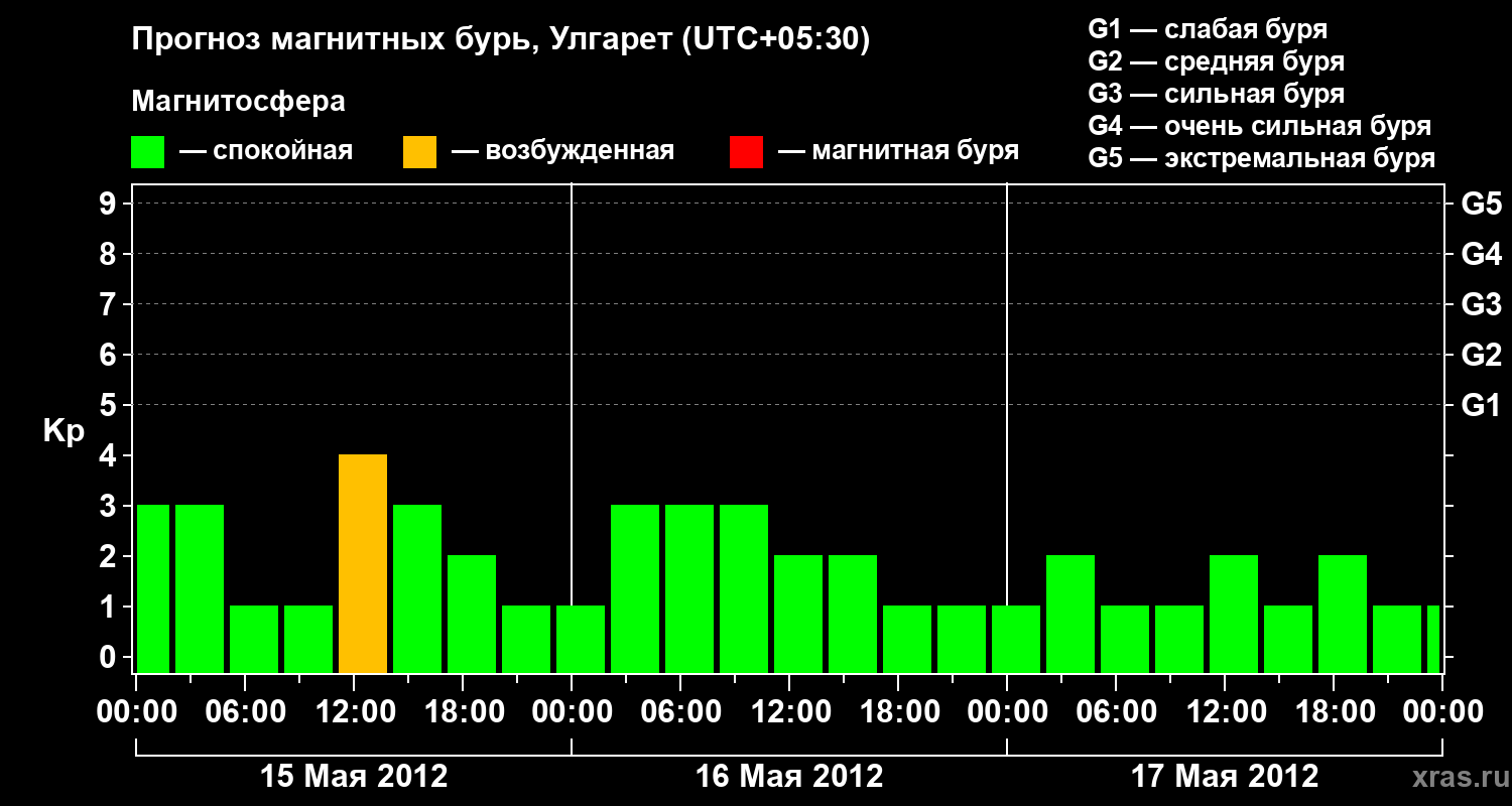 Прогноз магнитных бурь в Улгарете — 15 мая 2012 года