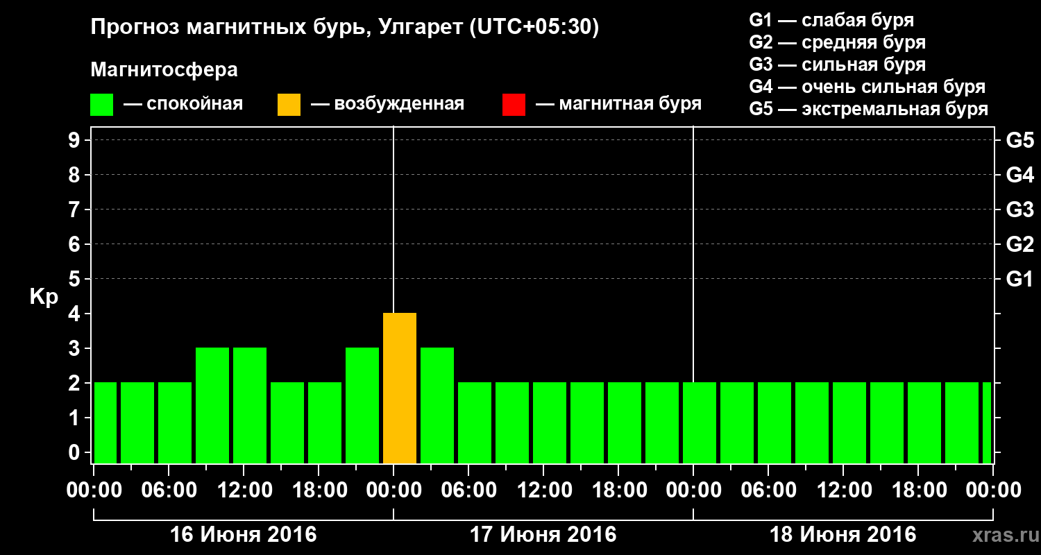 Прогноз магнитных бурь в Улгарете на 16 июня 2016 года