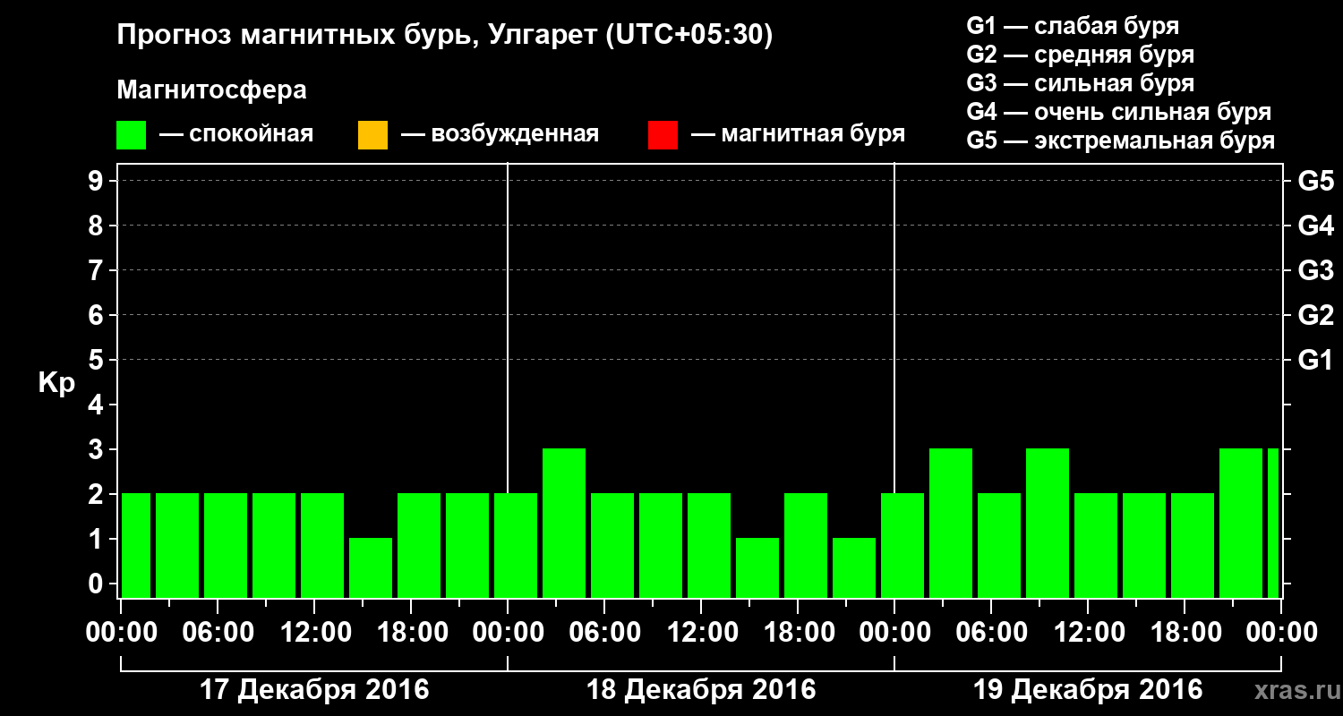 Прогноз магнитных бурь в Улгарете — 17 декабря 2016 года