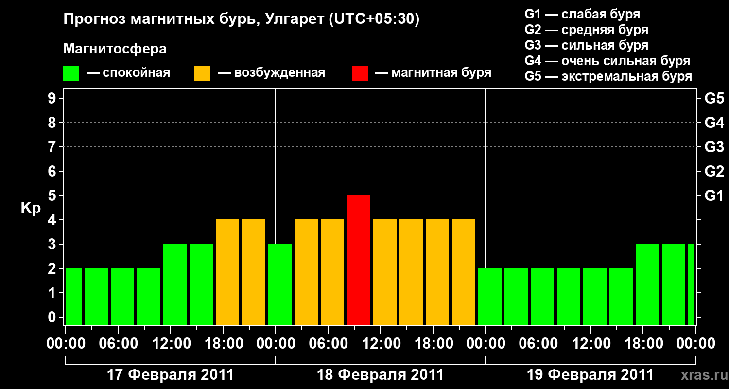 Прогноз магнитных бурь в Улгарете на 17 февраля 2011 года