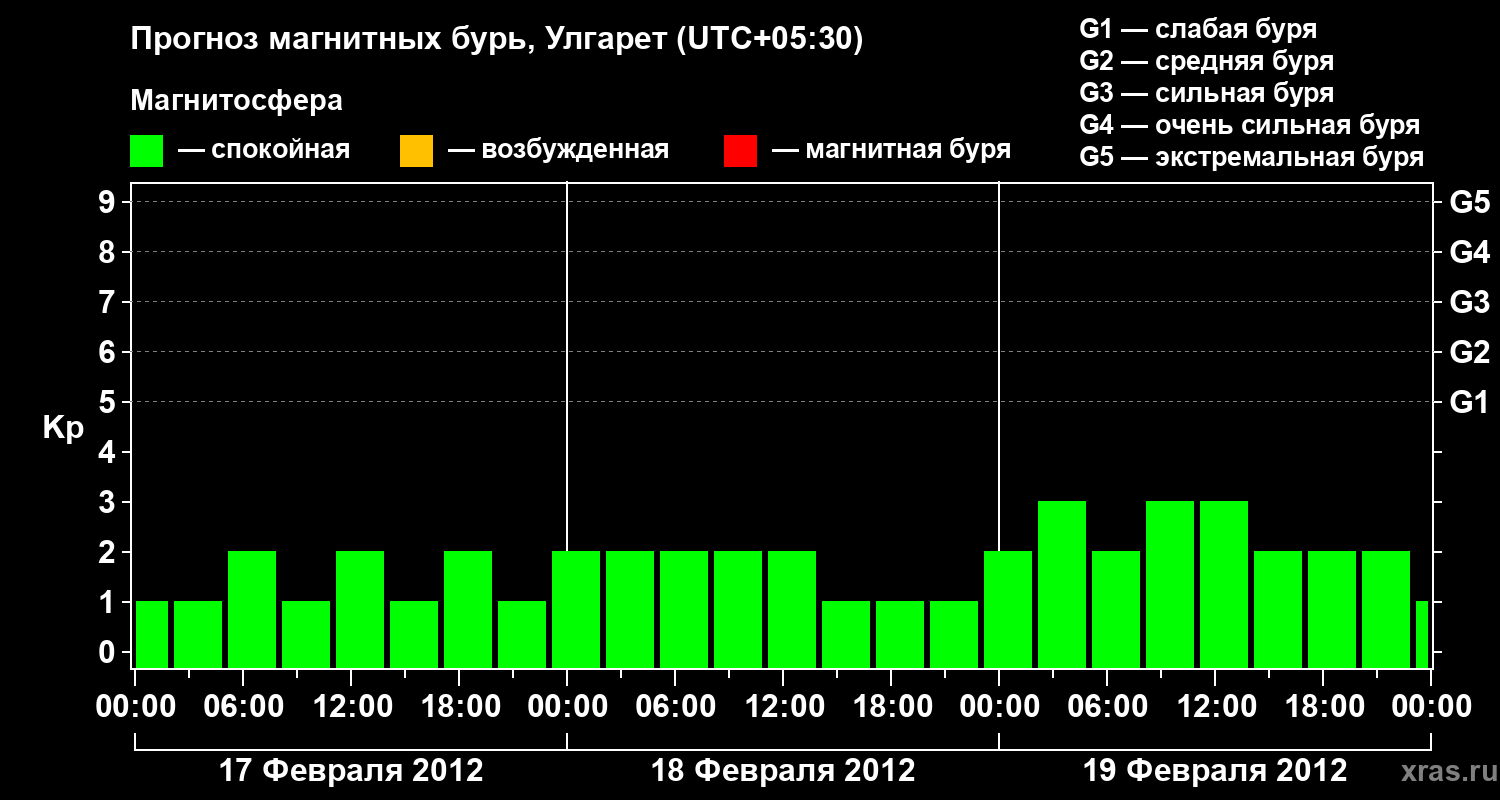 Прогноз магнитных бурь в Улгарете — 17 февраля 2012 года