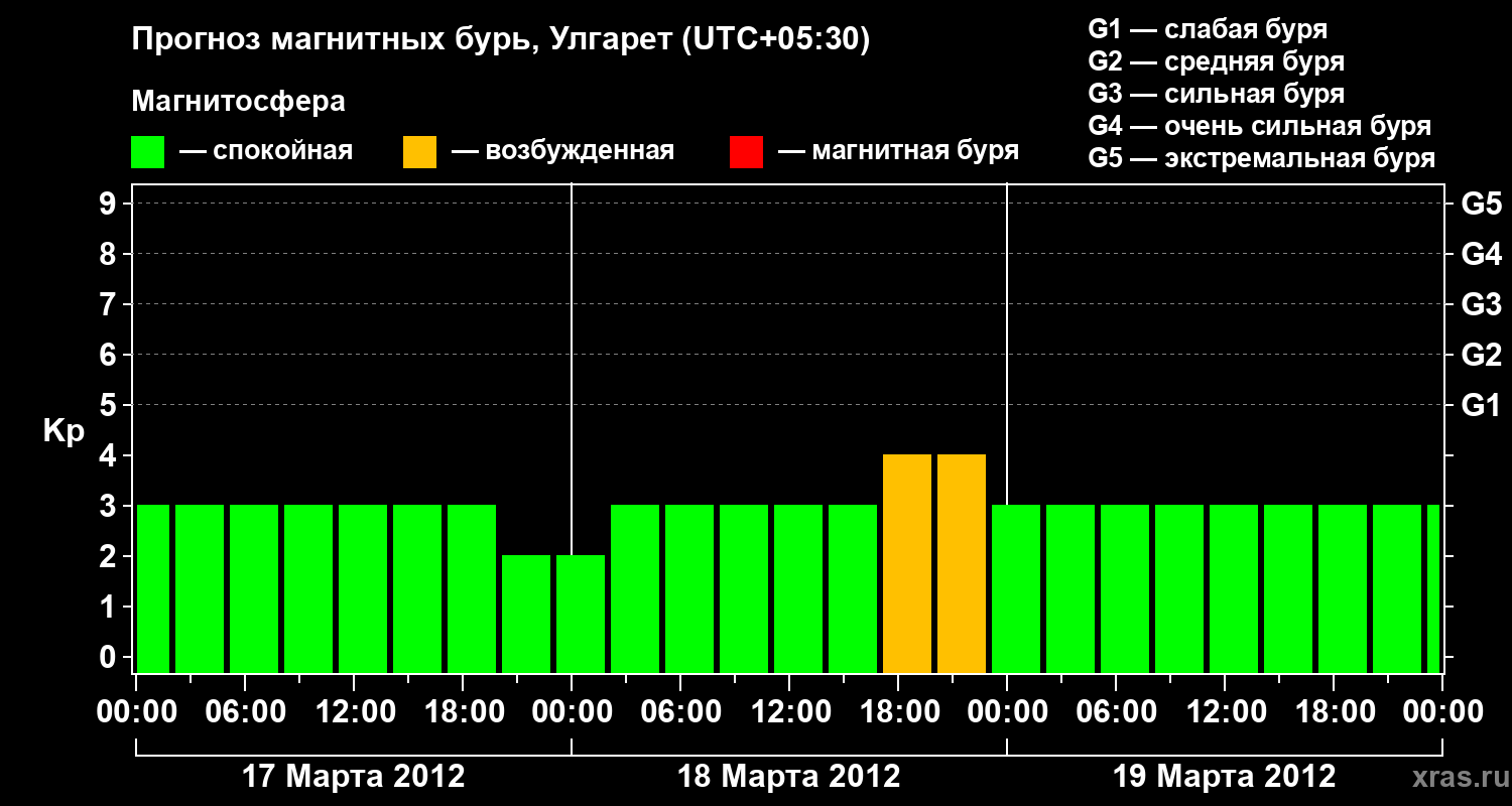 Прогноз магнитных бурь в Улгарете на 17 марта 2012 года