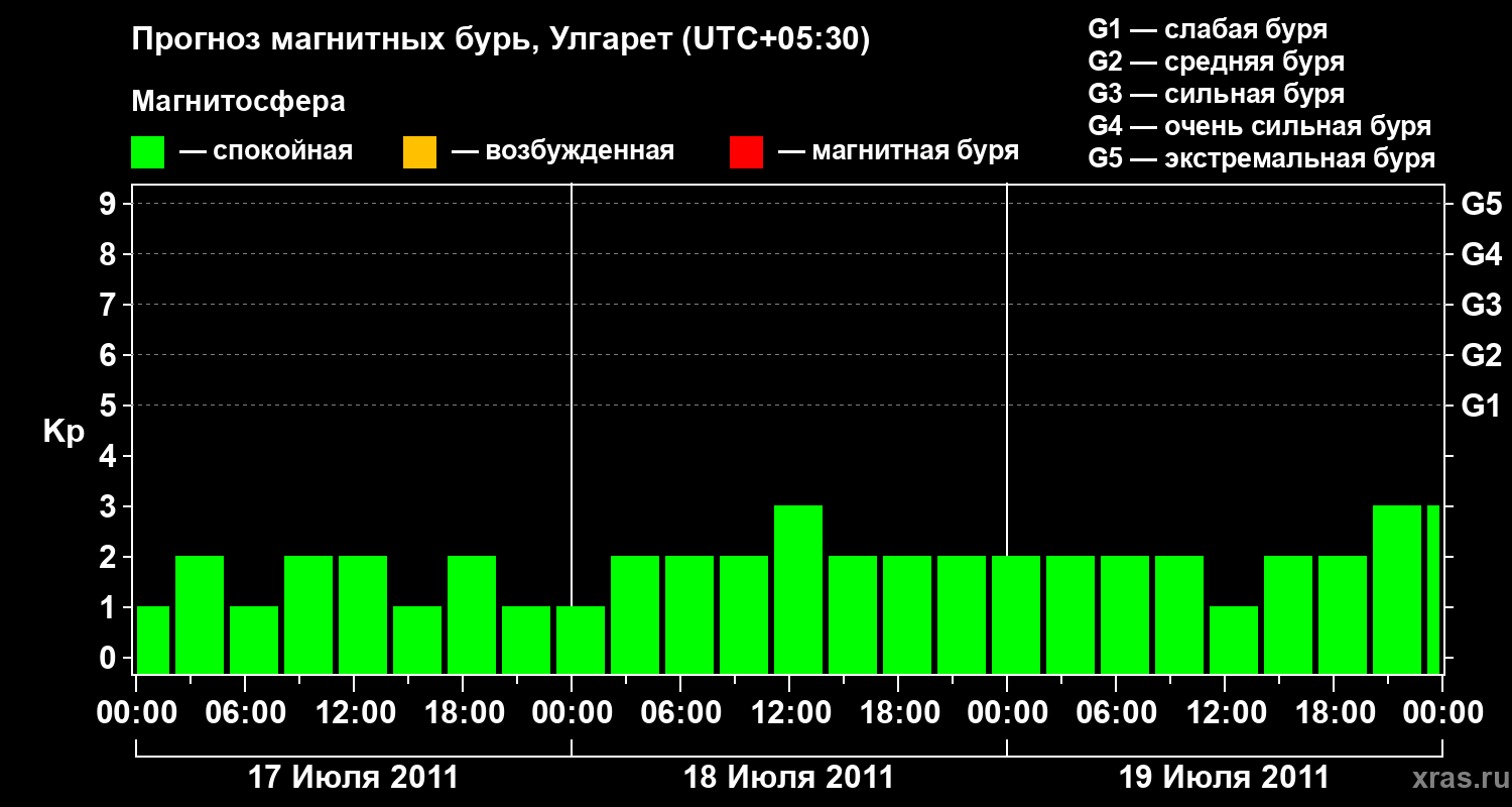 Прогноз магнитных бурь в Улгарете — 17 июля 2011 года