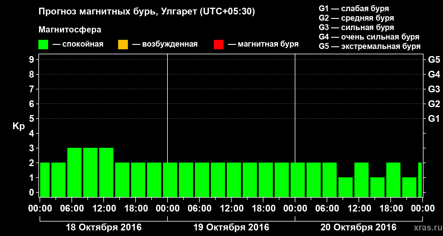 Прогноз магнитных бурь в Улгарете на 18 октября 2016 года