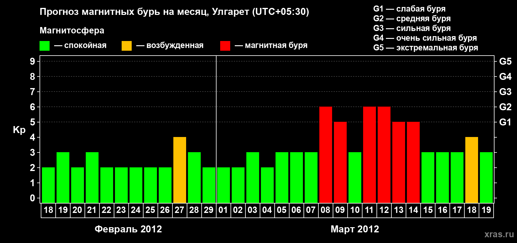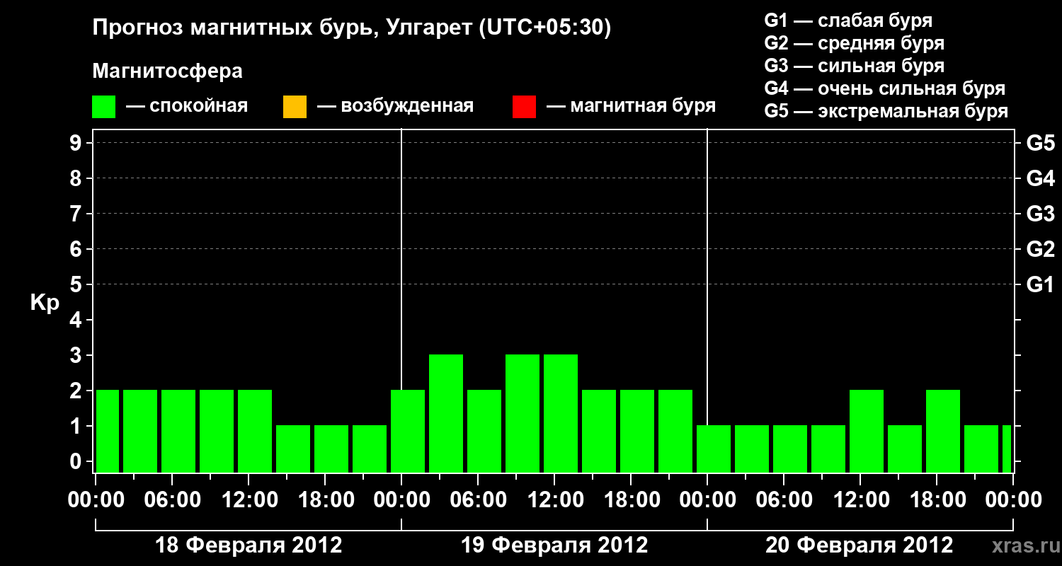 Прогноз магнитных бурь в Улгарете на 18 февраля 2012 года