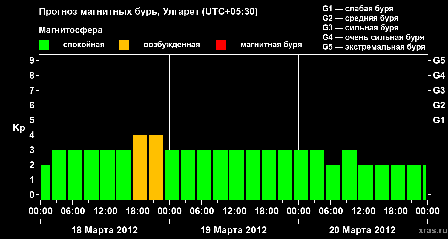 Прогноз магнитных бурь в Улгарете на 18 марта 2012 года