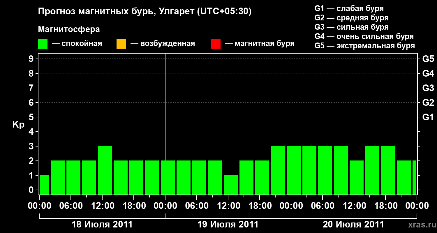 Прогноз магнитных бурь в Улгарете — 18 июля 2011 года
