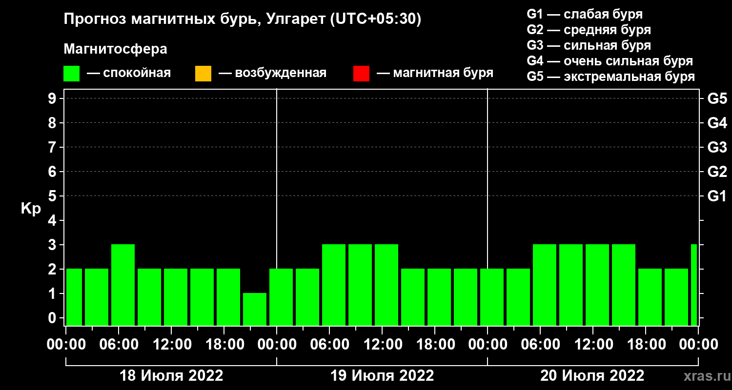 Прогноз магнитных бурь в Улгарете на 18 июля 2022 года