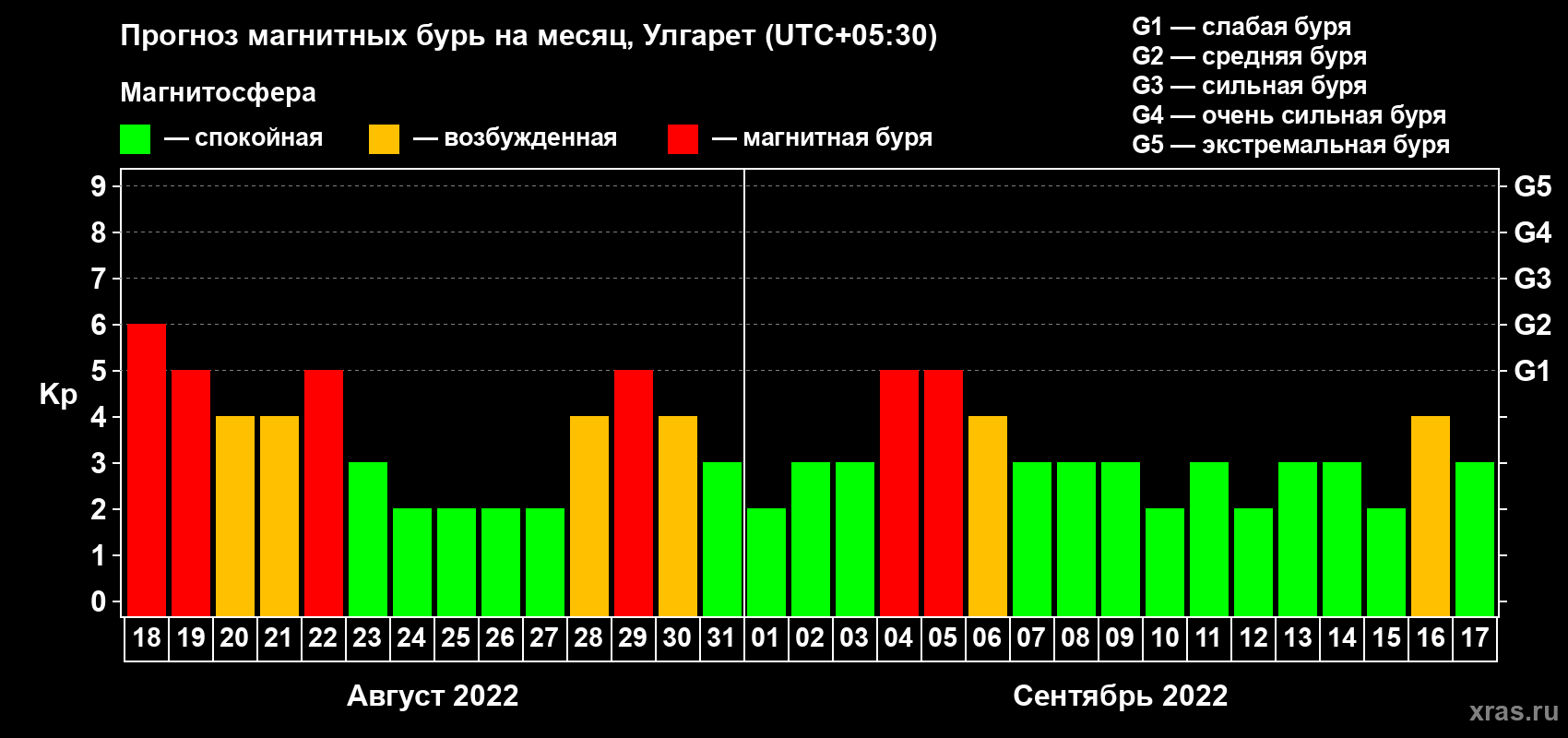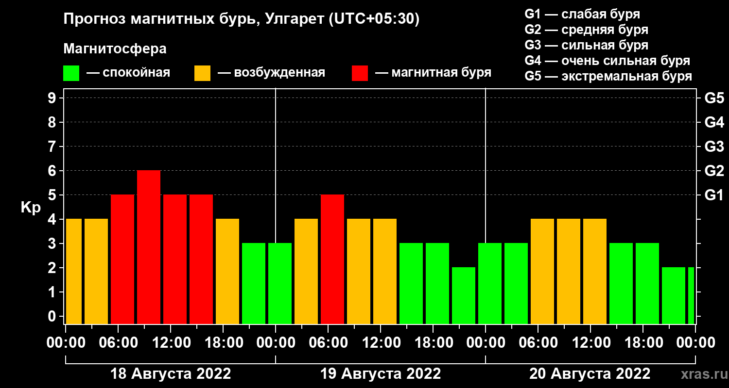 Прогноз магнитных бурь в Улгарете на 18 августа 2022 года